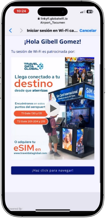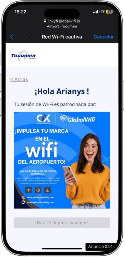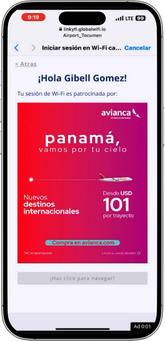 Reach thousands of passengers daily through our exclusive Tocumen Airport Wi-Fi ads.
